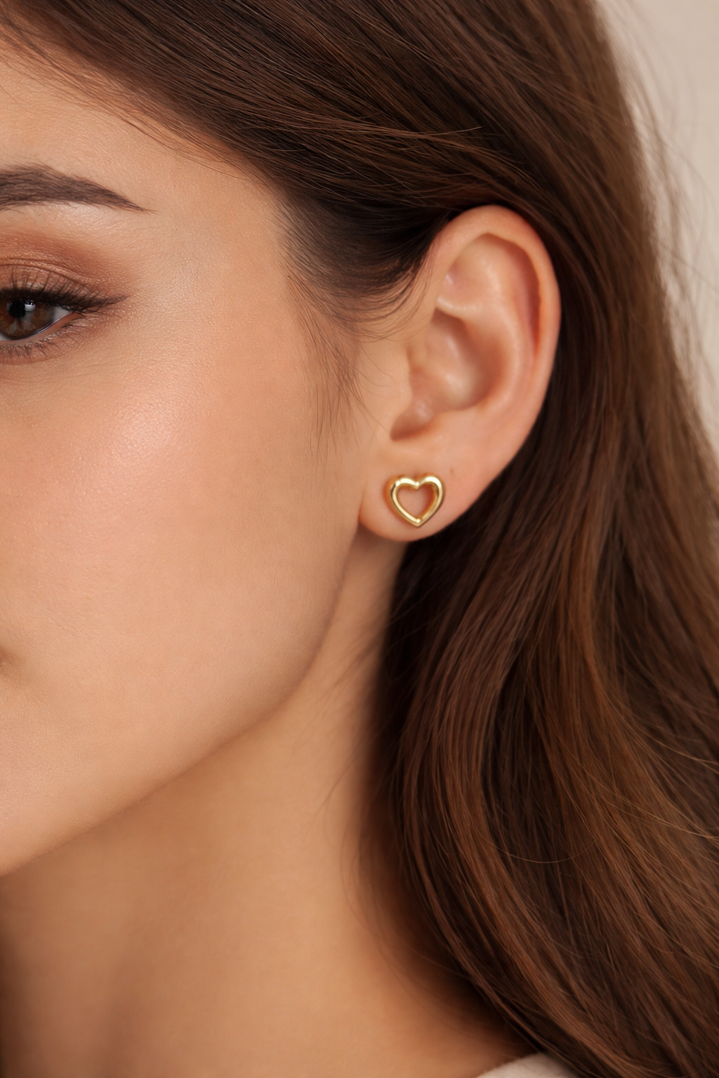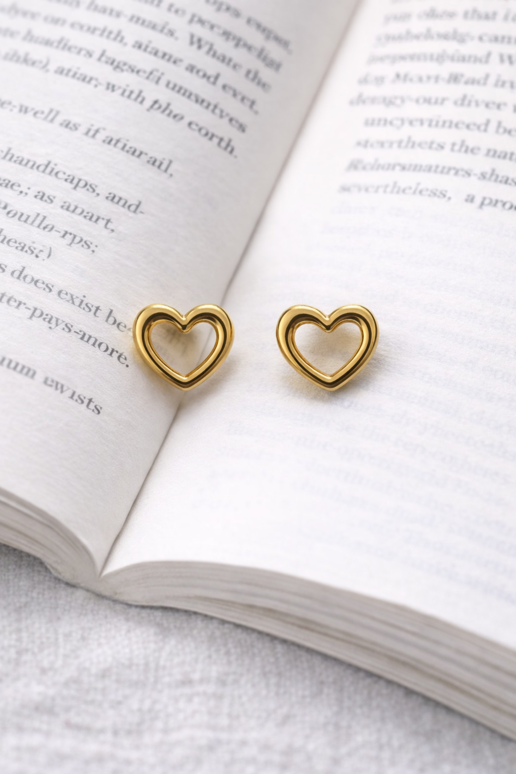 Delicate open-heart studs with a smooth, radiant gold finish.