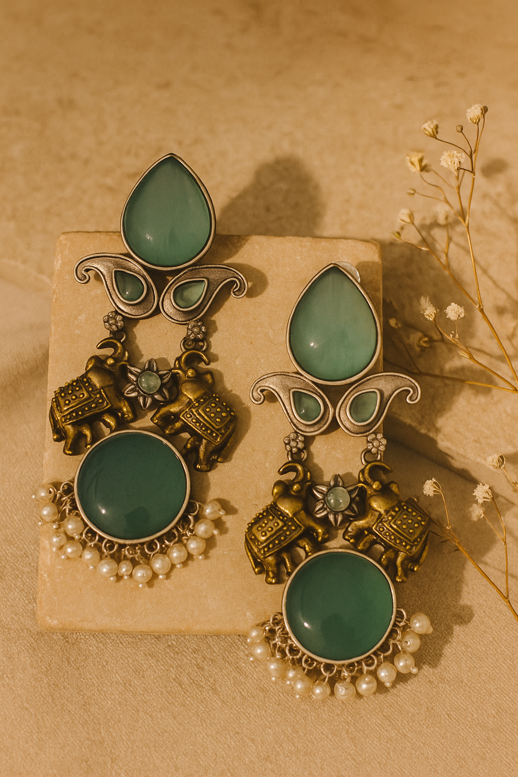 A blend of regal charm and playful artistry — these elephant-inspired earrings bring heritage and elegance to every look.